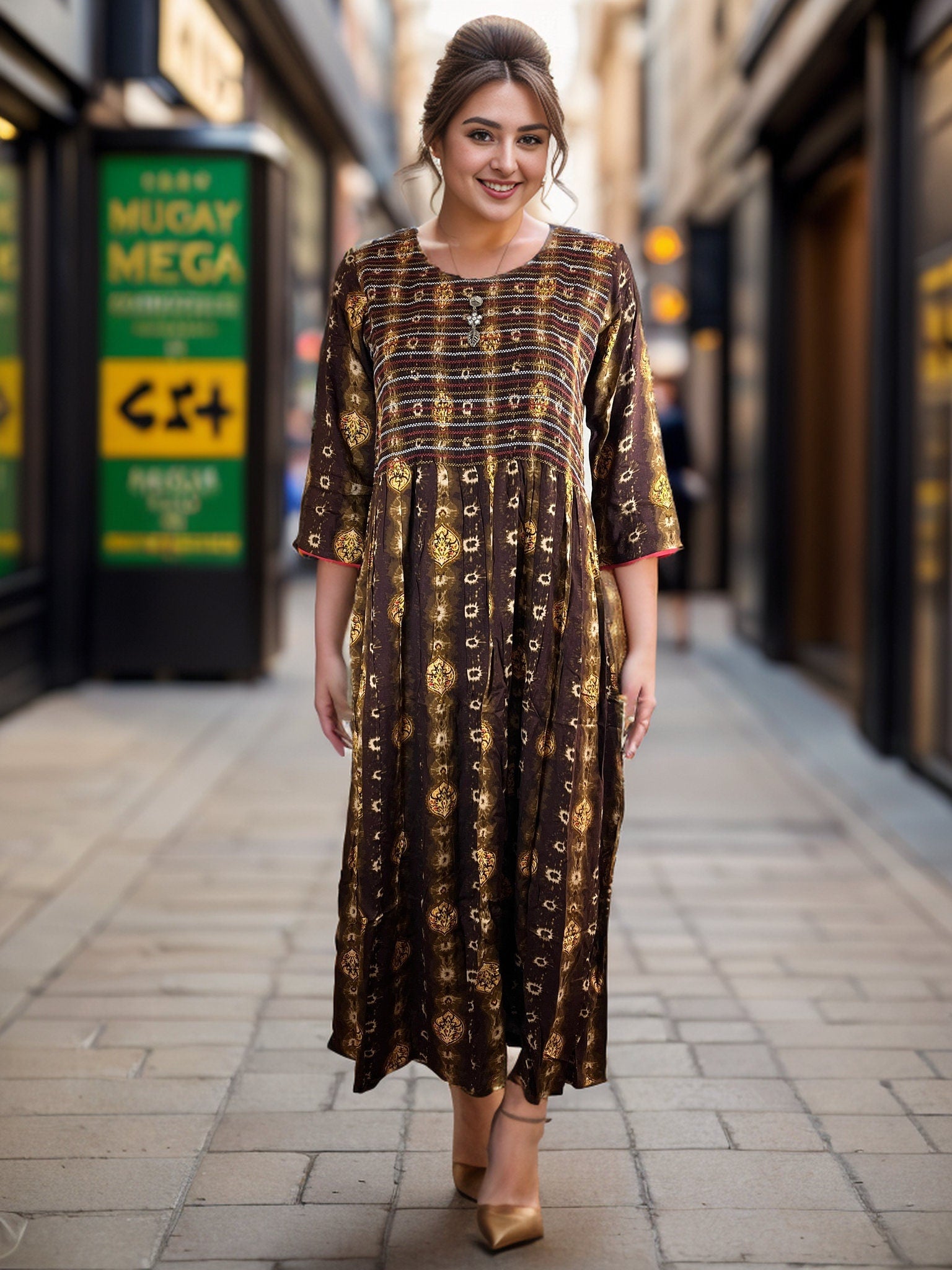 Make a statement this season with our stunning Brown and Yellow Tie Dyed Rayon Midi Dress! Crafted from soft, breathable rayon, this dress combines comfort with effortless style. The earthy brown and vibrant yellow tie-dye design creates a unique, bohemian look that‰۪s perfect for summer outings, festivals, or casual beach days.