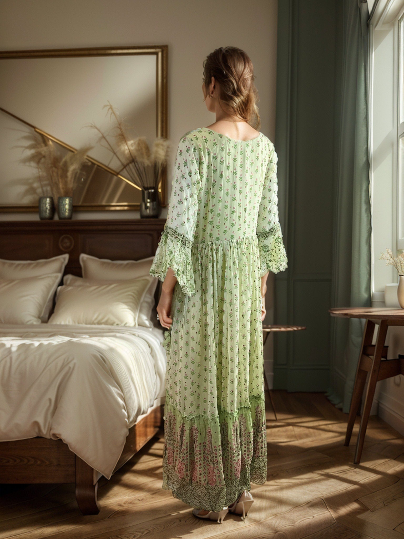 Crafted for comfort and style, this dress is your go-to piece for a blend of boho chic and timeless grace.