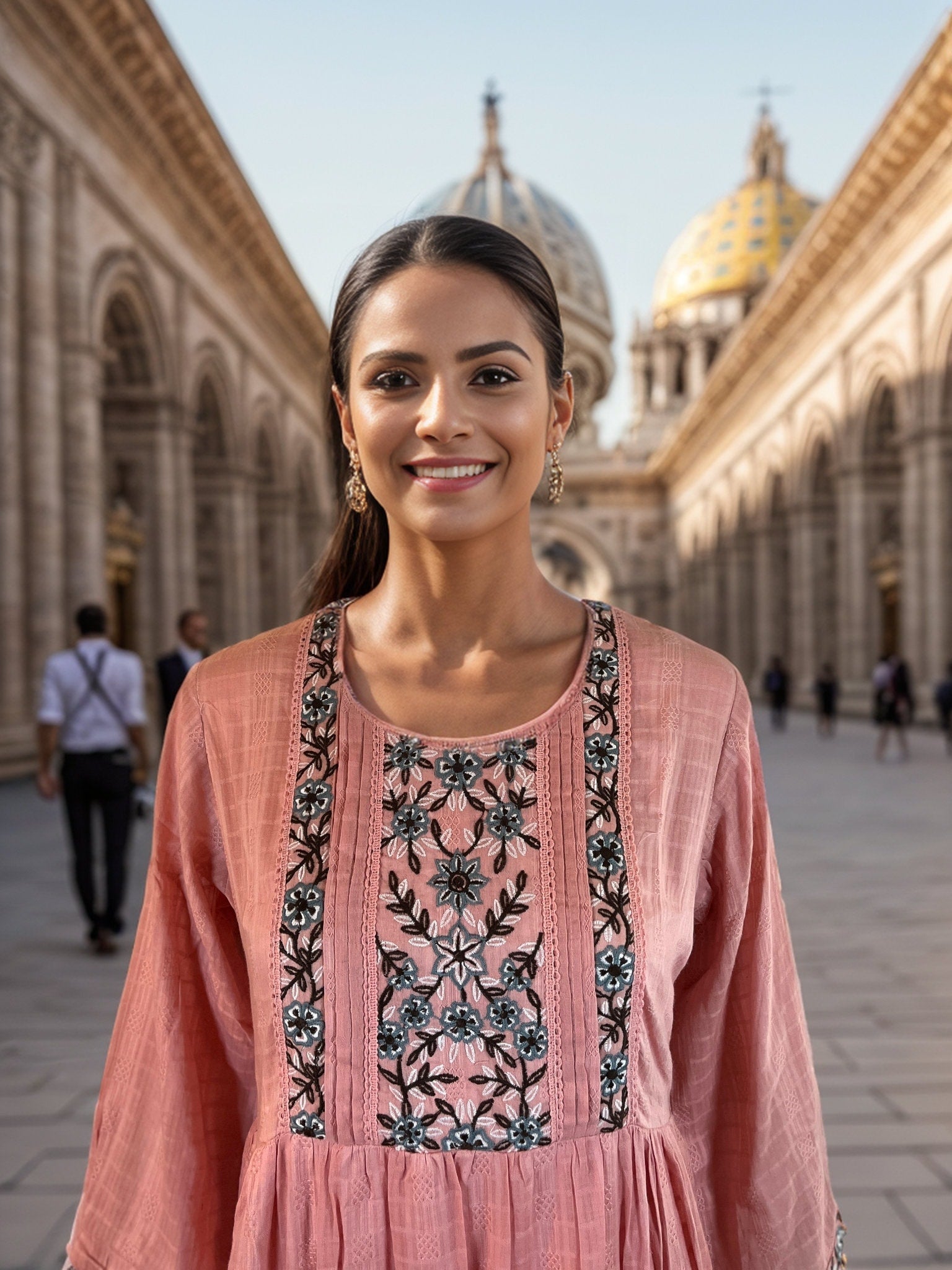 Crafted from 100% breathable cotton, this dress offers both comfort and style, perfect for any season. The intricate hand-embroidered details showcase traditional Indian craftsmanship, adding a touch of boho chic to your wardrobe.