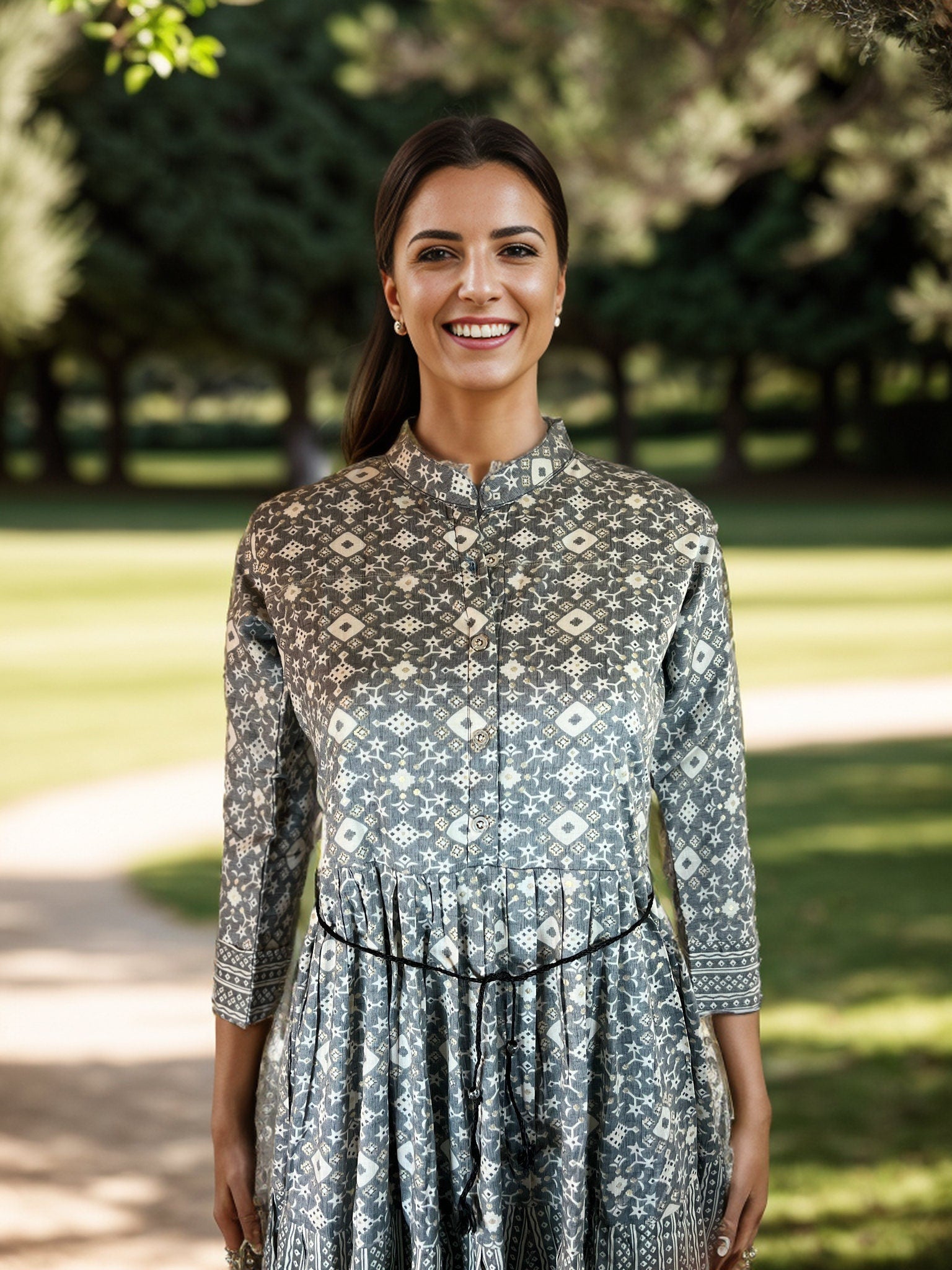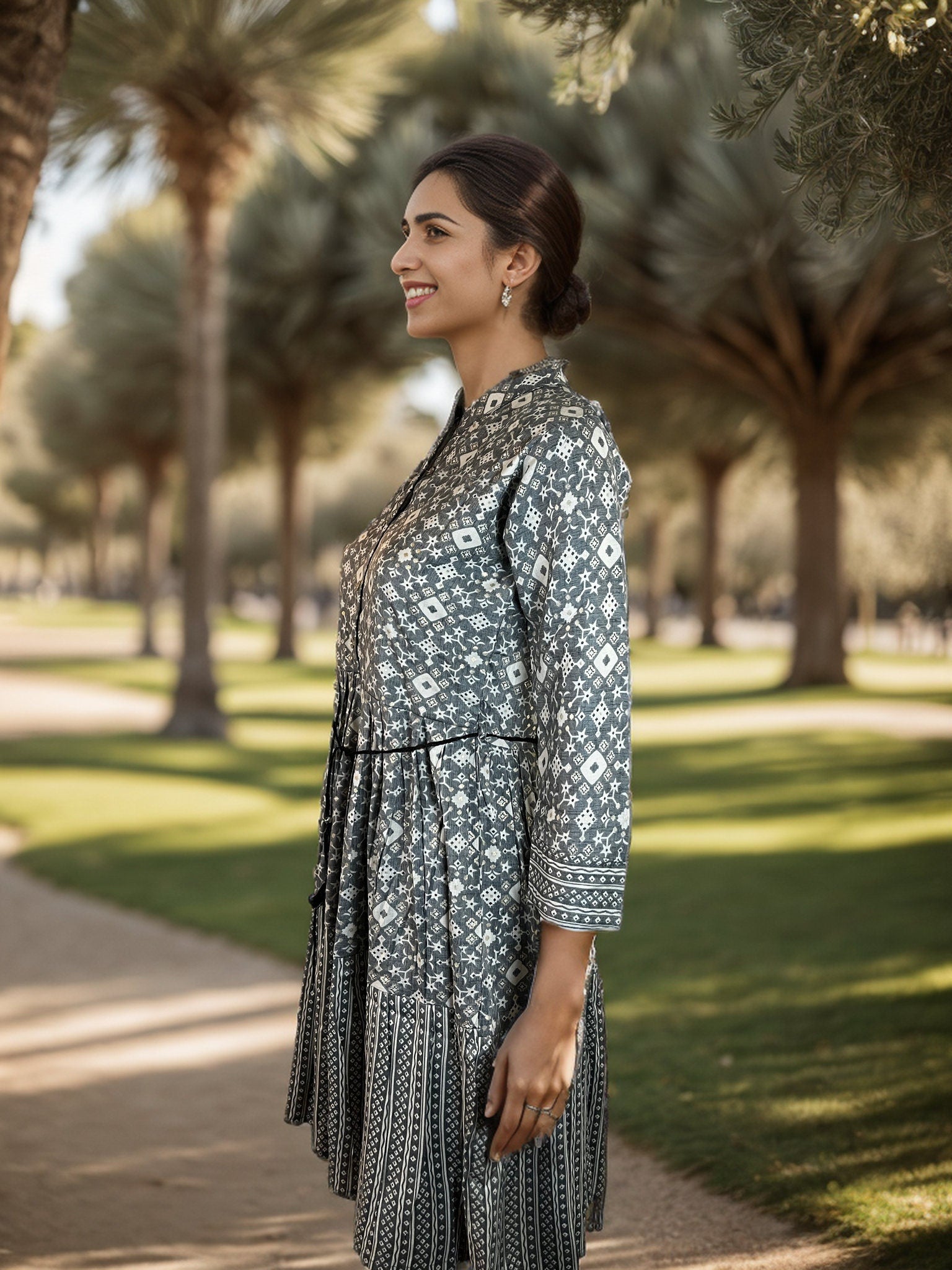 Step out in style with our gorgeous gray printed dress, crafted from soft, breathable rayon. This elegant piece features a subtle, yet eye-catching print that adds a touch of sophistication to your wardrobe. Whether you're heading to a casual brunch, a day at the office, or an evening out, this dress offers versatility and comfort.